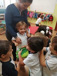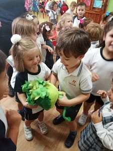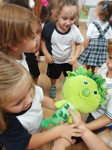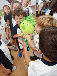 Los alumnos de 2º de Educación Infantil tuvieron en la clase una visita muy espacial Grin. Es la mascota del área de Religión que les va a acompañar a los largo de todo el curso y les va a ensañar todo tipo de cosas relacionadas con el cuidado de la Naturaleza, el cuidado de nosotros mismos y el cuidado a los demás