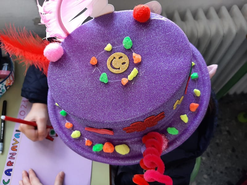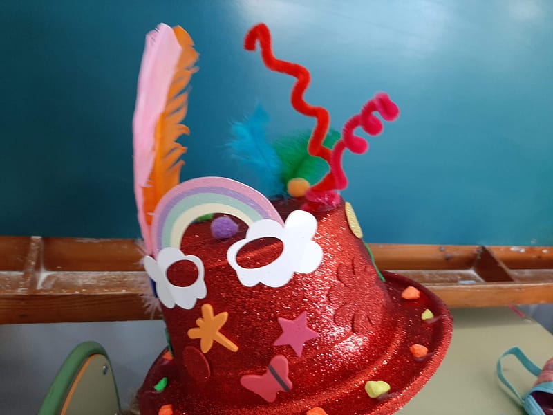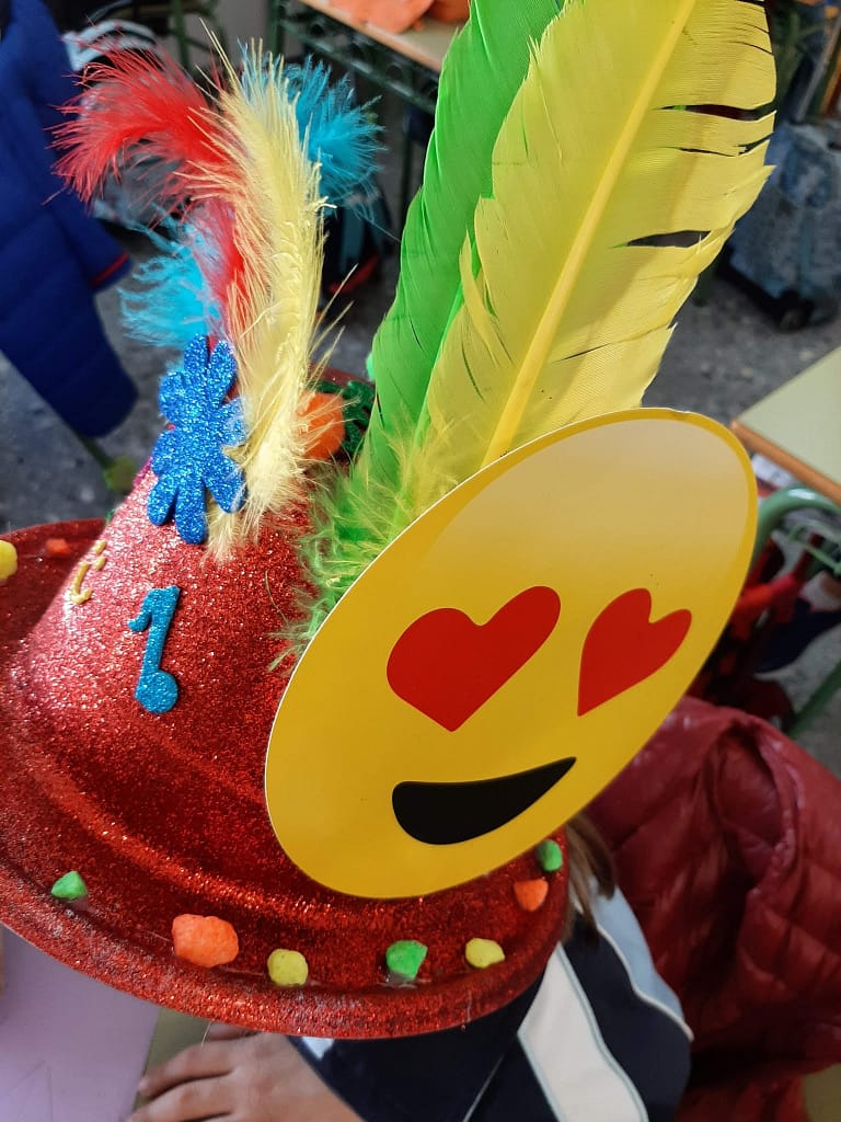 Los alumnos de 3º de E. Primaria hemos diseñado un divertido y creativo gorro con toques muy carnavaleros.