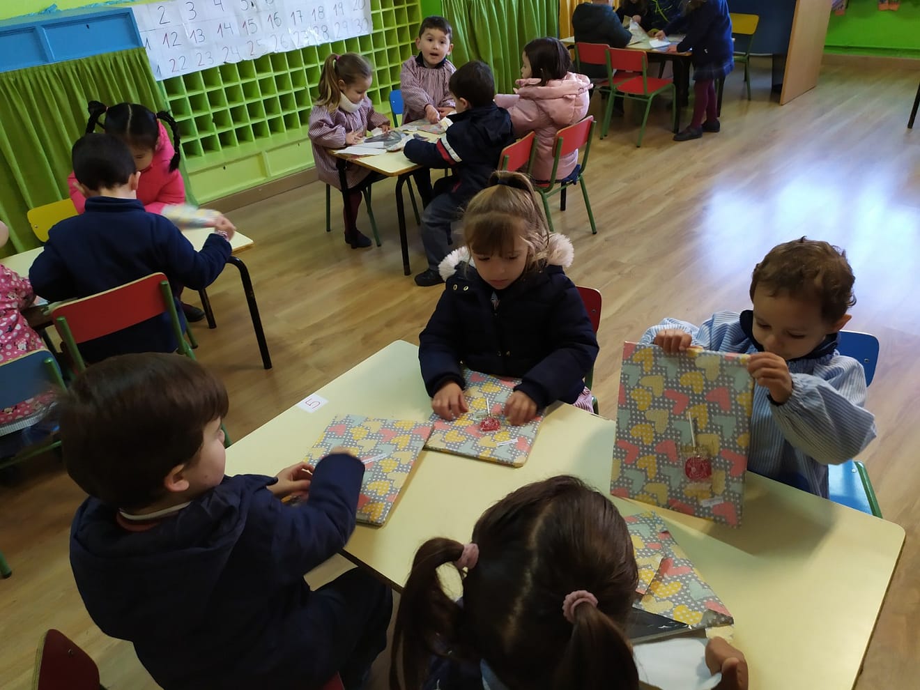 Los alumnos dibujaron los regalos que querían, hicieron su carta de los Reyes Magos, dónde se demostró que da igual que sean niños o niñas en su preferencias, hay niños que piden muñecas y coches y a la inversa. Hemos bajamos al gimnasio y los alumnos estuvieron haciendo actividades con aros, se lo pasaron estupendamente.