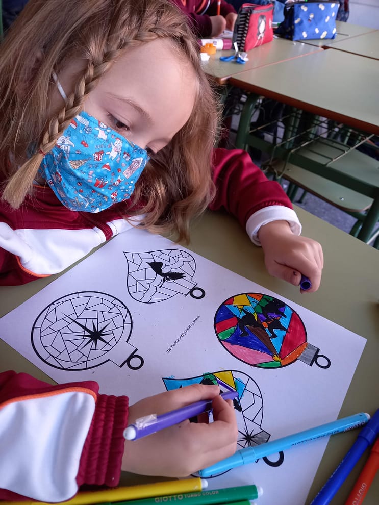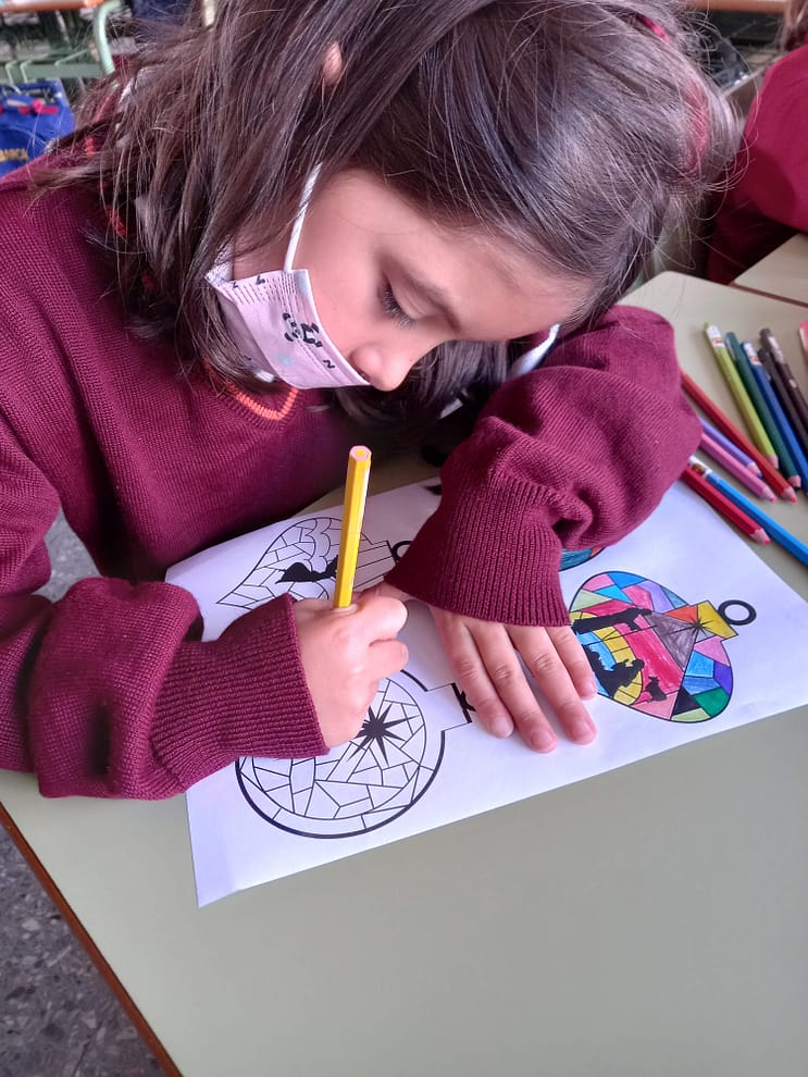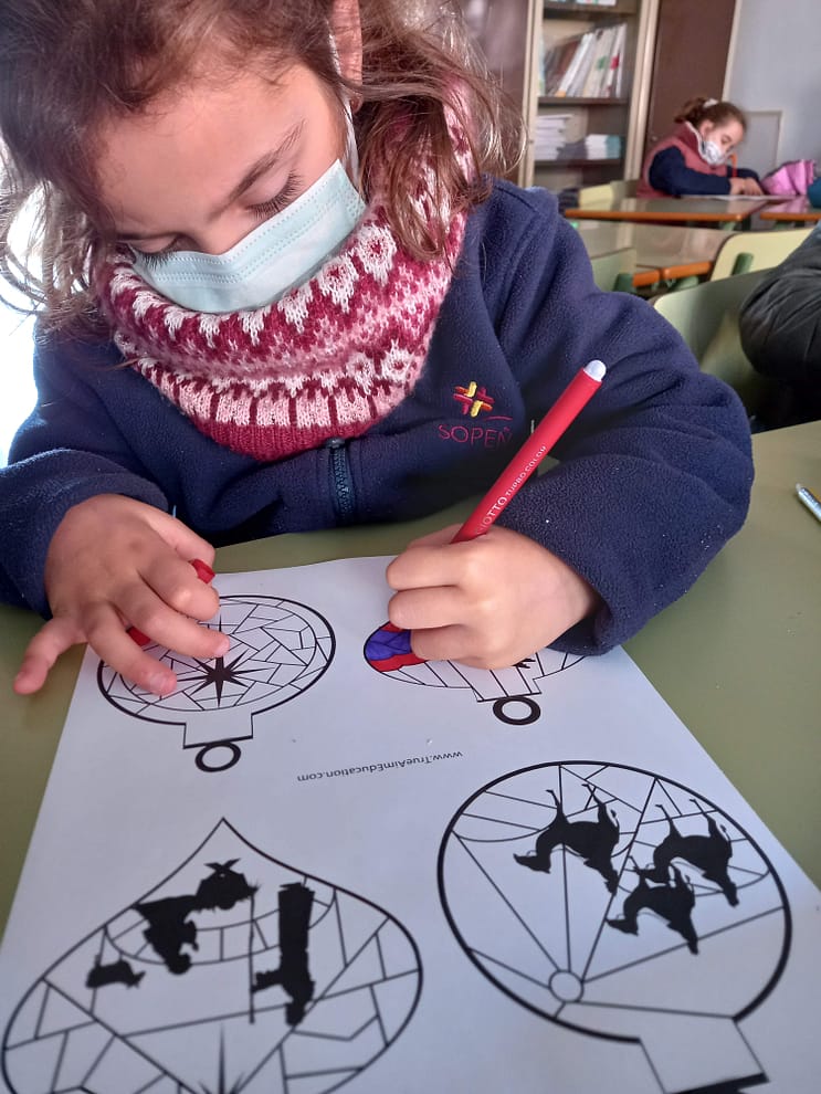 El alumnado de 1º de Educación Primaria está coloreando y preparando unos bonitos, coloridos y creativos adornos para su árbol o portal de Belén.
