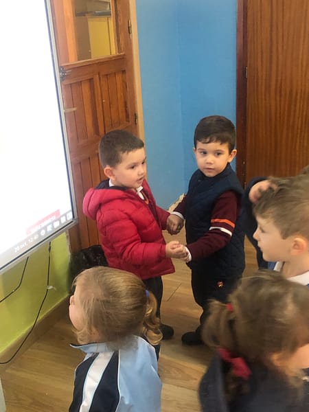A los alumn@s de 3 años nos encanta bailar. Hemos conocido a HAYDN, un compositor que nos acompañará este curso, así como algunas de sus obras. Escuchando la audición «EL RELOJ» nos hemos imaginado que estábamos en un palacio, hemos invitado a los compañer@s a bailar y nos hemos dejado llevar por su música.