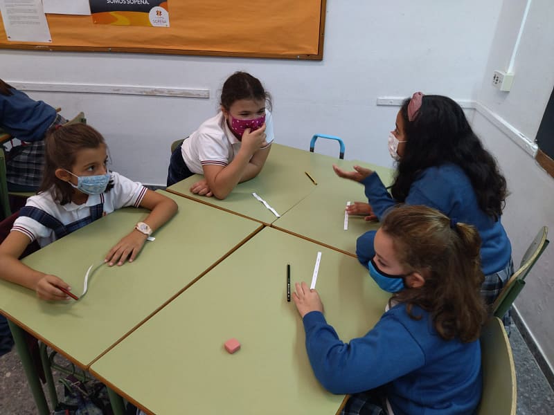 Tras descubrir algunas de las palabras más utilizadas en castellano, los alumnos de tercero de primaria han jugado a construir oraciones empleando algunas de esas palabras. Cada miembro del grupo recibía seis de ellas, y trabajando en equipo tenían que lograr formar diferentes oraciones. ¡Qué divertido es aprender jugando!