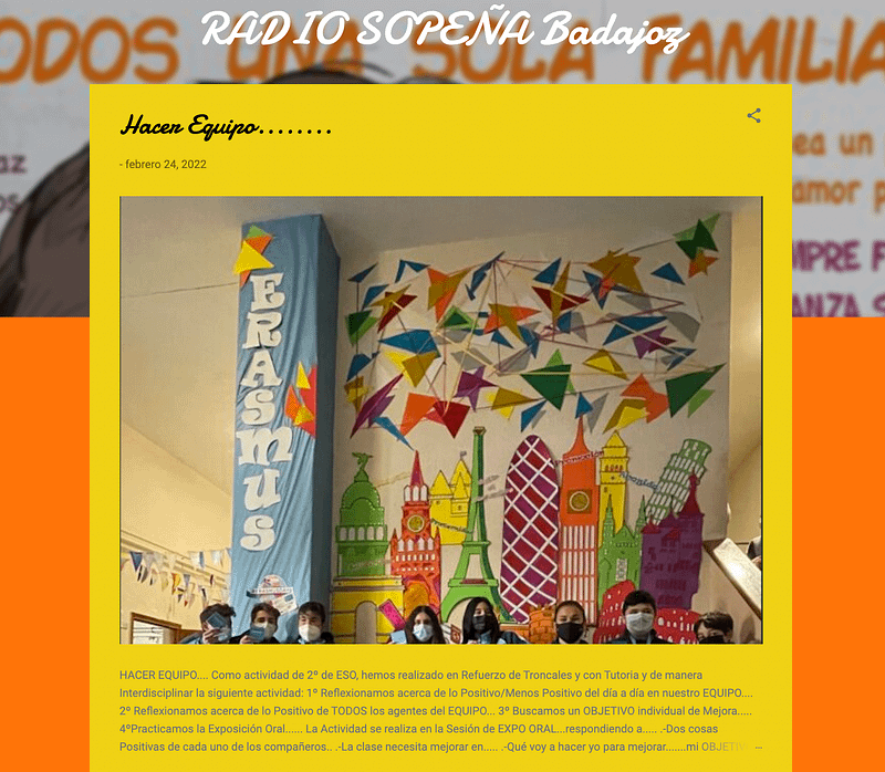Pasa por nuestra radio y escucha los últimos podcasts y entrevistas. Esta semana los alumnos de 2º de ESO nos invitan a conocer el trabajo que están haciendo en clase con el lema de «Hacemos Equipo»….. https://radiosopenabadajoz.blogspot.com/