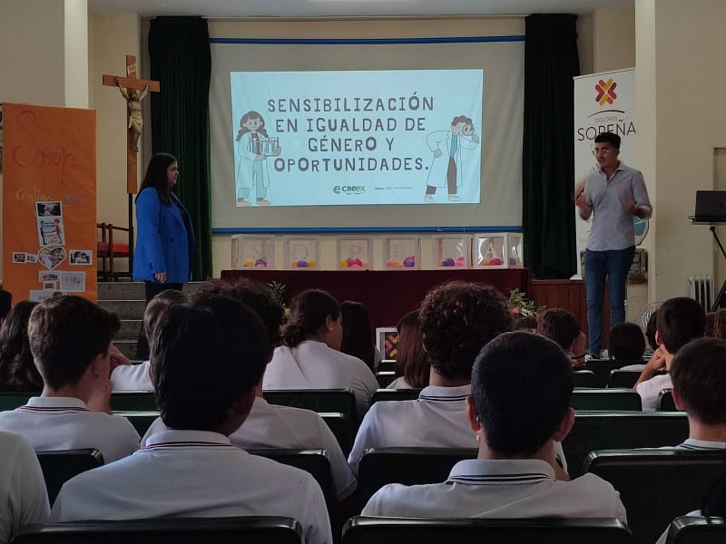 SENSIBILIZACIÓN EN IGUALDAD Nuestros alumnos de 3º y 4º de ESO, han recibido de Confederación Regional Empresarial Extremeña Creex Comunica , una charla sobre sensibilización en igualdad. Una iniciativa en apoyo a nuestro Plan de Igual de Centro.