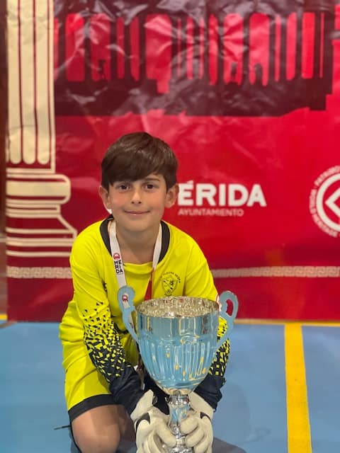 Nuestro alumno Hugo Holguera Gallego de 2º Primaria, se ha proclamado Campeón de 1ª división fútbol sala Prebenjamín con el C.P. Flecha Negra y ha sido el portero menos goleado. Campeones del campeonato de Extremadura fútbol sala Prebenjamines. ¡Enhorabuena campeón!