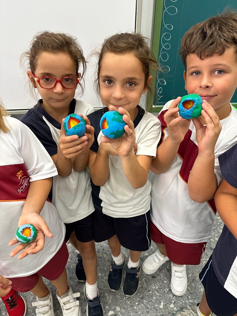 Los alumnos de 3º EP del Colegio Sopeña nos enseñan sus manualidades del planeta Tierra donde se pueden distinguir las capas que hemos estudiado en clase. Hemos tenido la ayuda de los padres y madres para poder cortar una parte y así apreciar mejor las distintas capas.