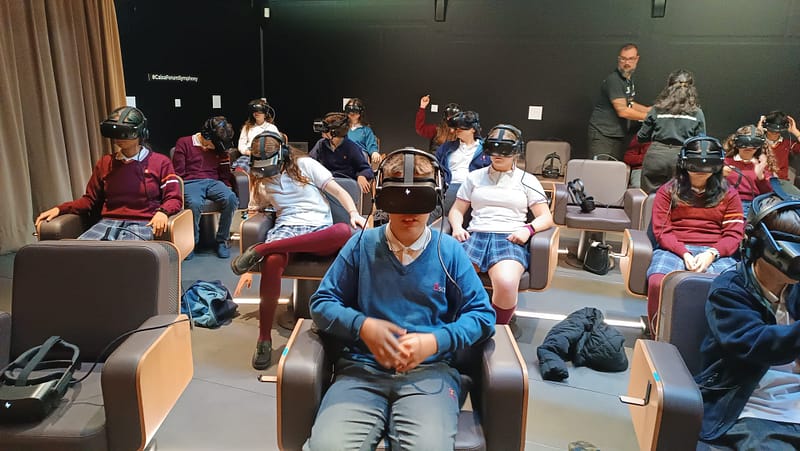 El alumnado de 1⁰ y 2⁰ de ESO ha podido disfrutar de una experiencia musical inmersiva en el espectáculo Symphony. Aquí los alumnos y alumnas pudieron sentirse como un músico más dentro de una orquesta.