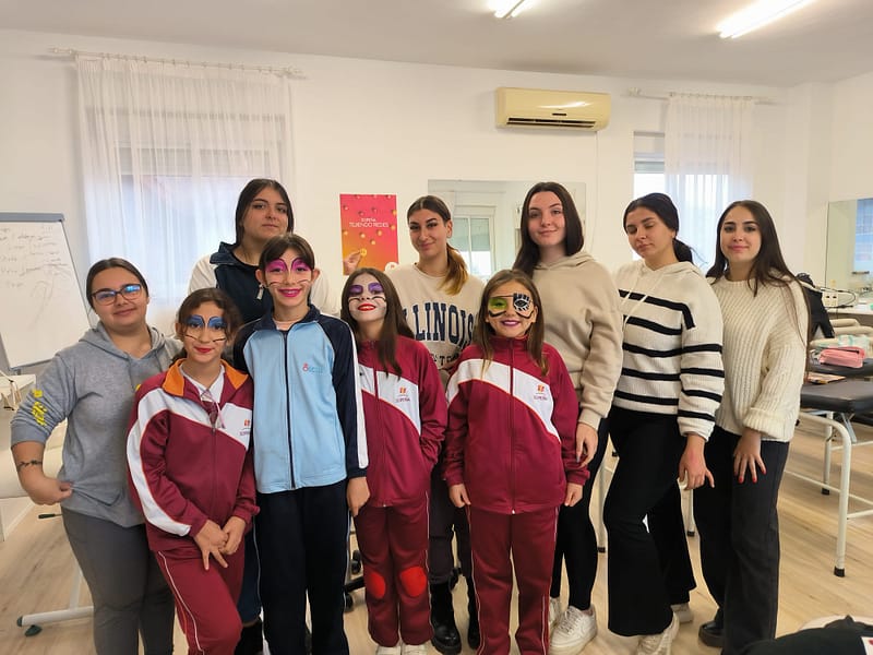 Desde Sopeña seguimos Tejiendo Redes. Hoy, el alumnado de 1º de Estética y Belleza ha maquillado al alumnado de 5º de Primaria para la obra: «El embrujo de la Navidad».