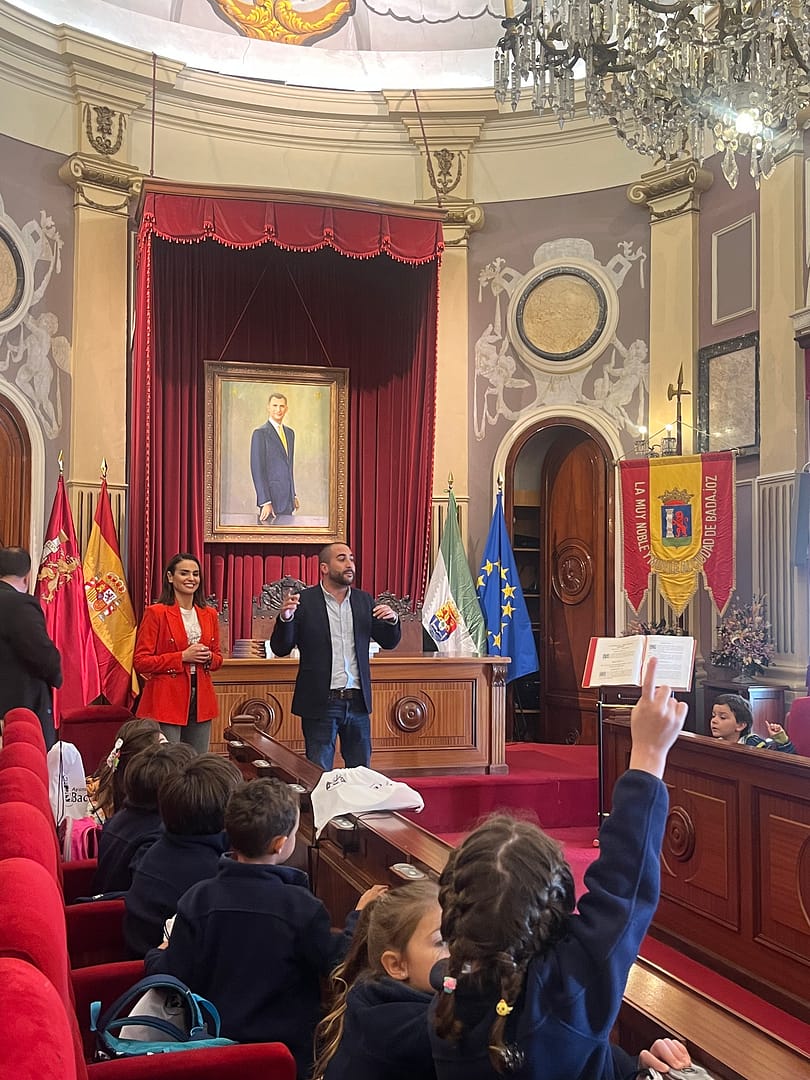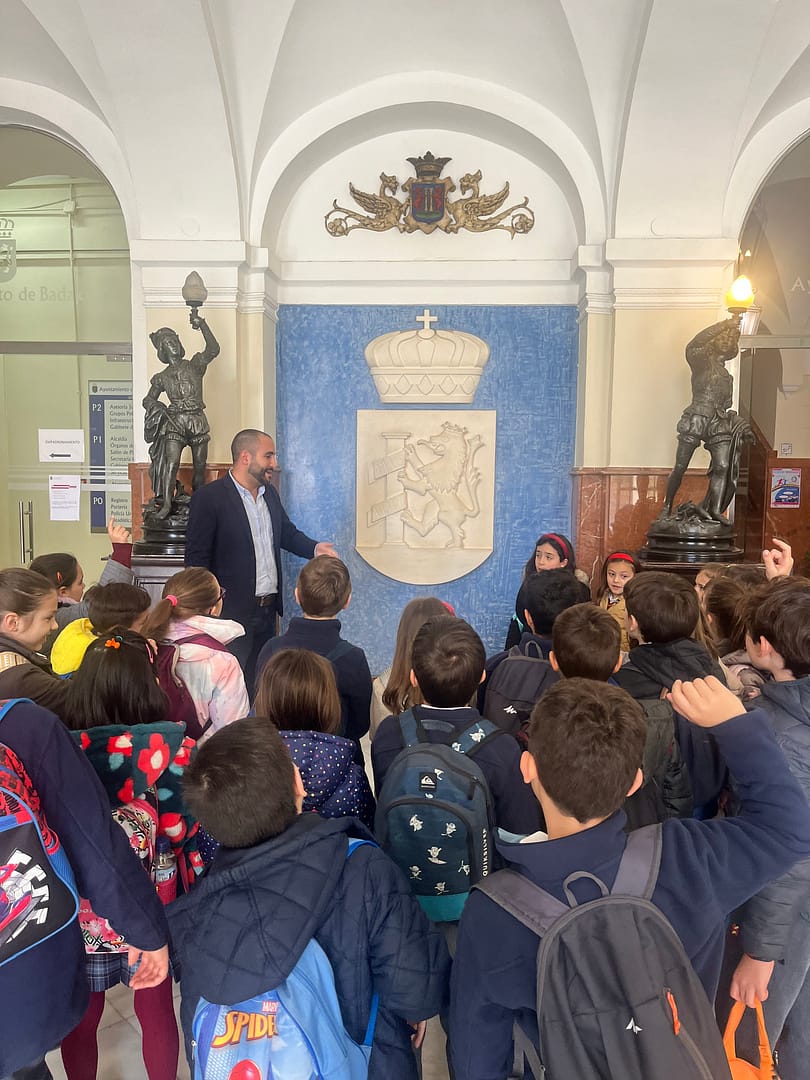Hoy ha sido un día emocionante para el alumnado de primero y segundo de Primaria del Colegio Sopeña de Badajoz. Nos hemos aventurado hacia el centro de la ciudad para explorar el fascinante mundo del gobierno local en una visita especial al Ayuntamiento de Badajoz.Desde el momento en que llegamos, fuimos recibidos con una calurosa bienvenida por parte del personal del ayuntamiento, quienes nos guiaron a través de un recorrido enriquecedor por las distintas áreas y funciones del edificio.