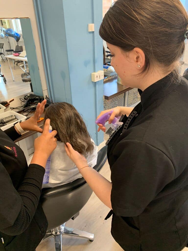 Los alumnos de Aspaceba visitaron nuestros talleres de Peluquería y Estética. Los peinaron con estilo y se realizaron una sesión de manicura.