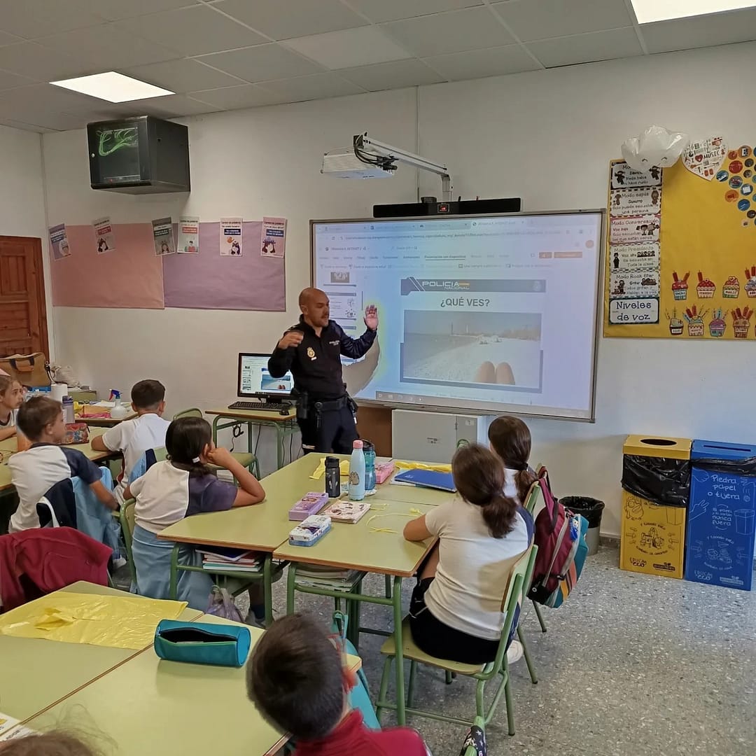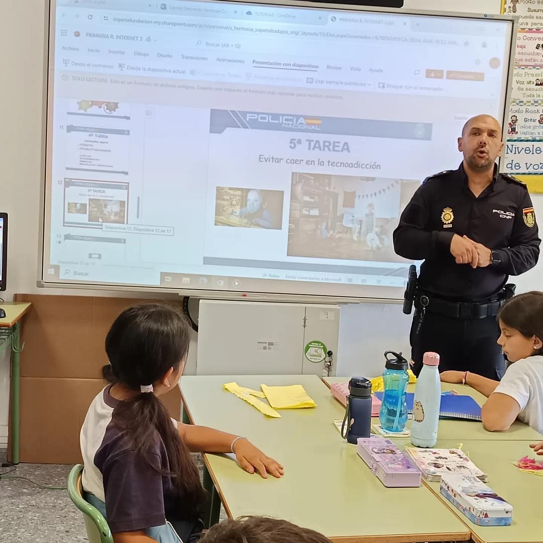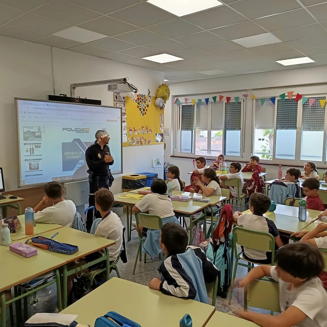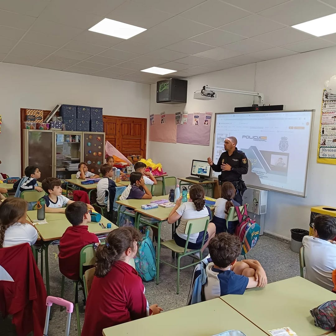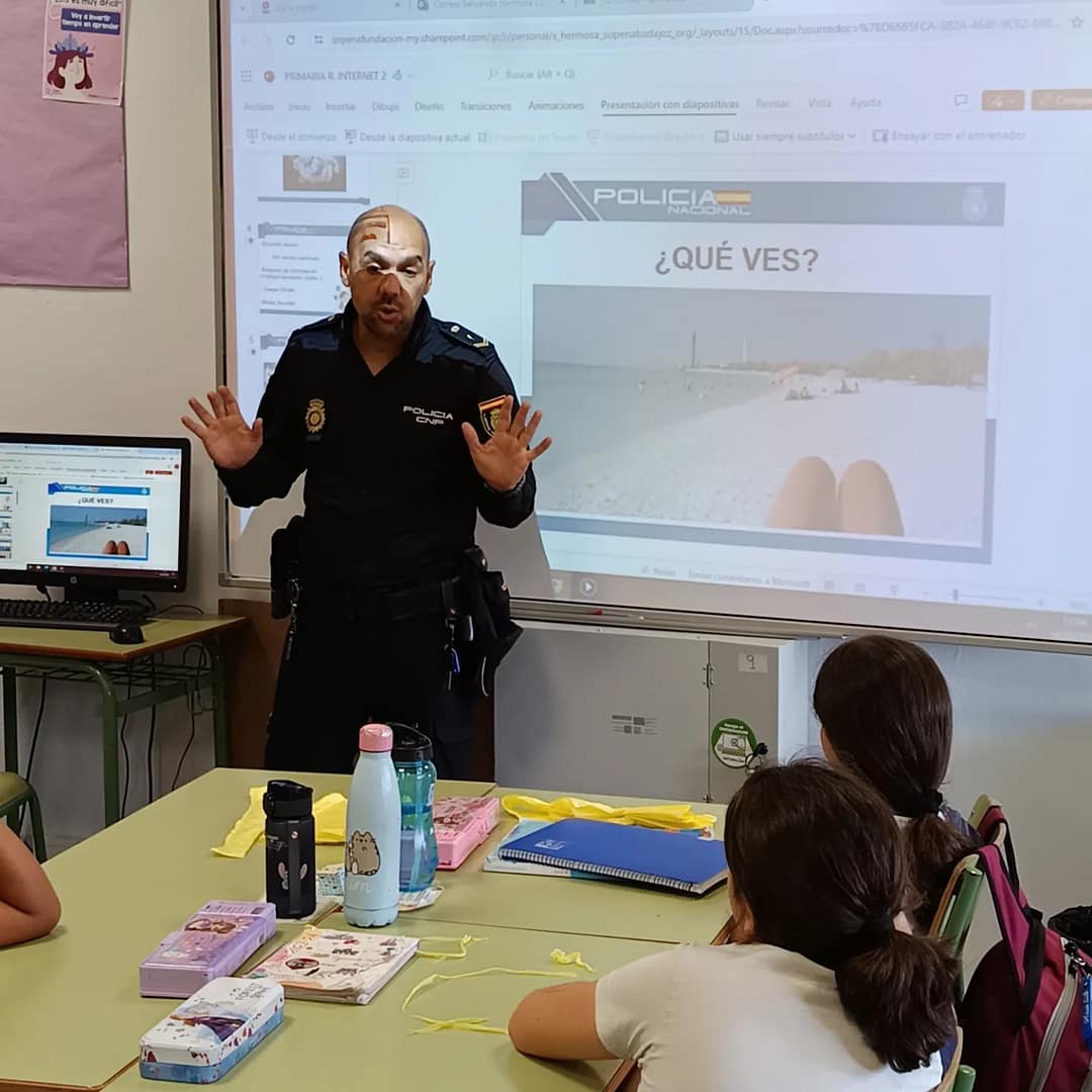 D. Luis Cabrera como responsable del grupo de participación ciudadana de la Jefatura Superior de la Policía Nacional ha compartido con el grupo clase muchos consejos: cómo crear una contraseña segura , identificar los iconos de los videojuegos , la edad legal para usar redes sociales y nos ha alertado de riesgos en los que como niños/as podemos caer, descubriendo montajes de fotos o estafas (nadie regala roblos, PSP5, ni tarjetas con 1.000€).