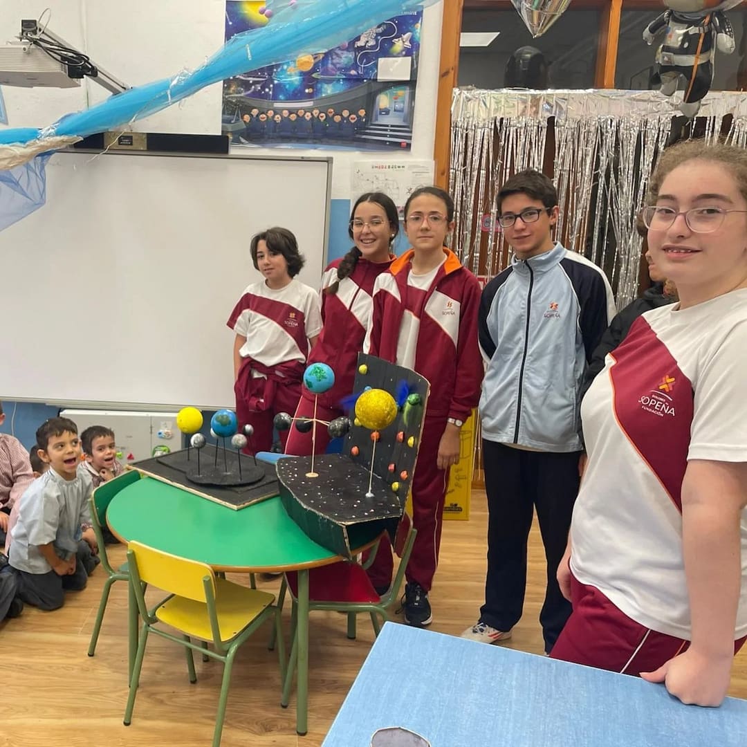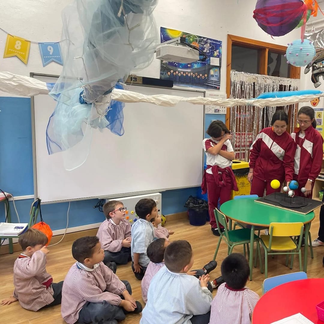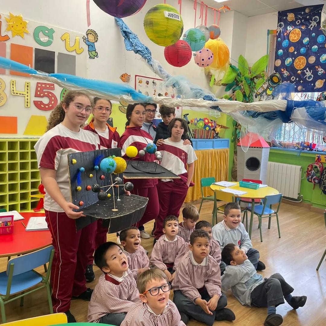 Alumnos y alumnas de 1° ESO han visitado a nuestros pequeños soñadores de Educación Infantil para enseñarles las maquetas de la Tierra y la Luna que han realizado en la asignatura de biología.
