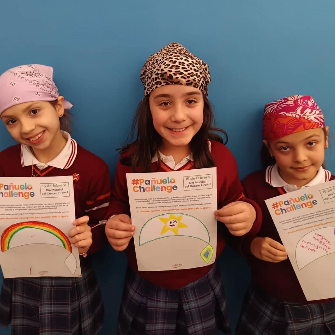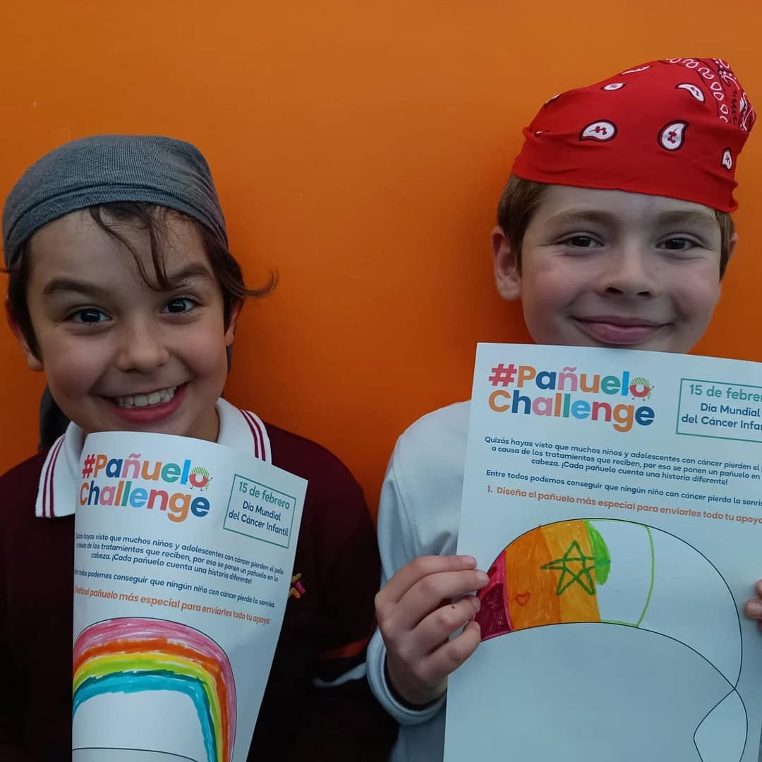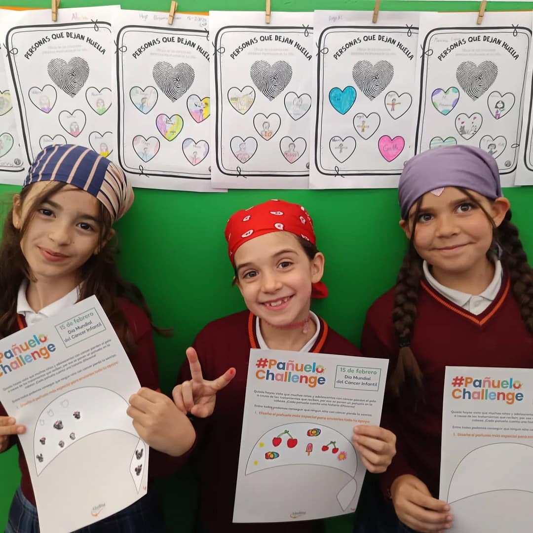 El alumnado de Primaria ha participado esta semana en la iniciativa #pañuelochallengue de @fundacionaladina. Han descubierto la iniciativa a través de testimonios, han compartido dudas, preguntas y sobre todo han demostrado empatía y mucha sensibilidad. Muchos alumnos/as tienen a @soyvonco o los bebés pelones, una forma de colaborar para la Investigación y el bienestar de los pacientes y familias.