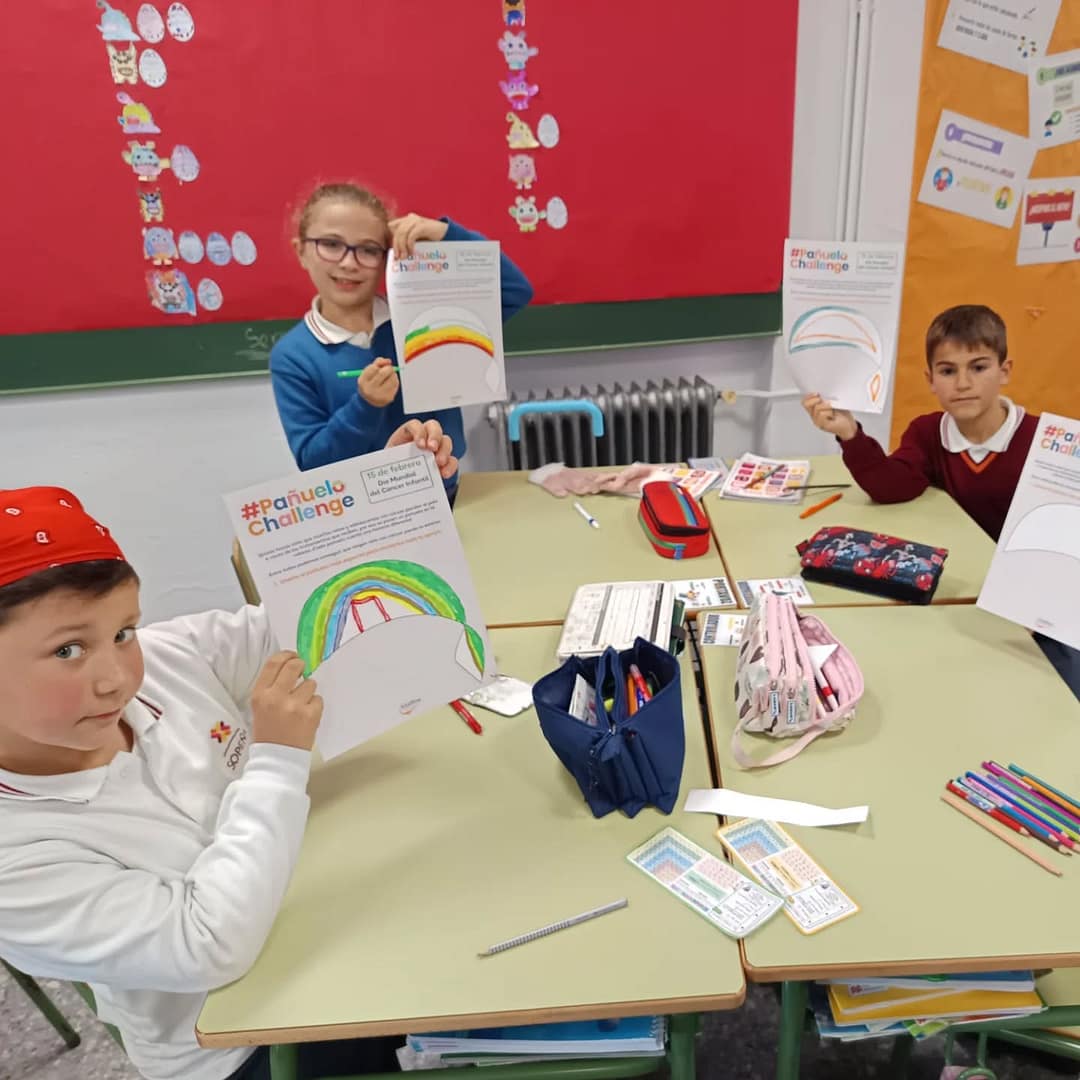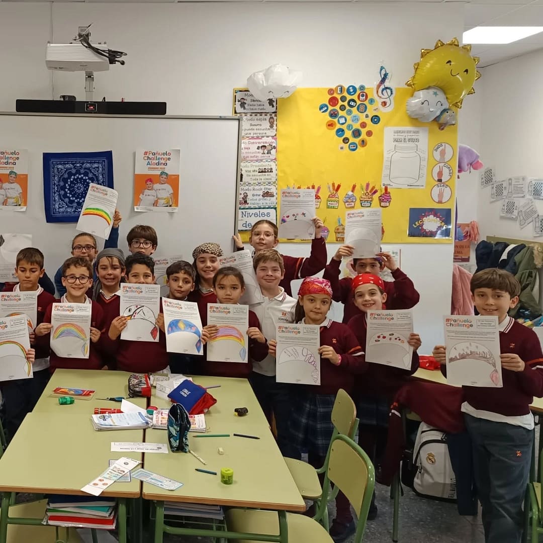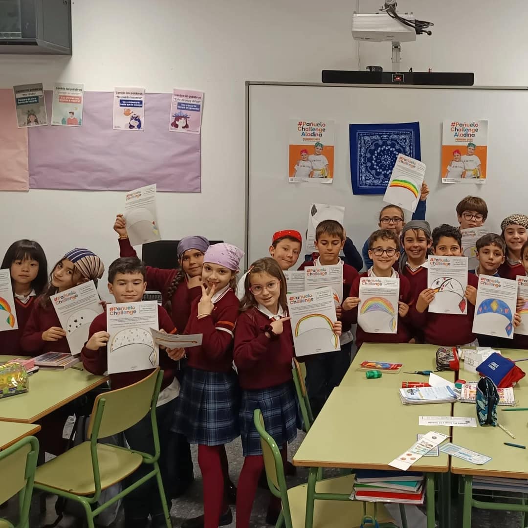 El alumnado de Primaria ha participado esta semana en la iniciativa #pañuelochallengue de @fundacionaladina. Han descubierto la iniciativa a través de testimonios, han compartido dudas, preguntas y sobre todo han demostrado empatía y mucha sensibilidad. Muchos alumnos/as tienen a @soyvonco o los bebés pelones, una forma de colaborar para la Investigación y el bienestar de los pacientes y familias.