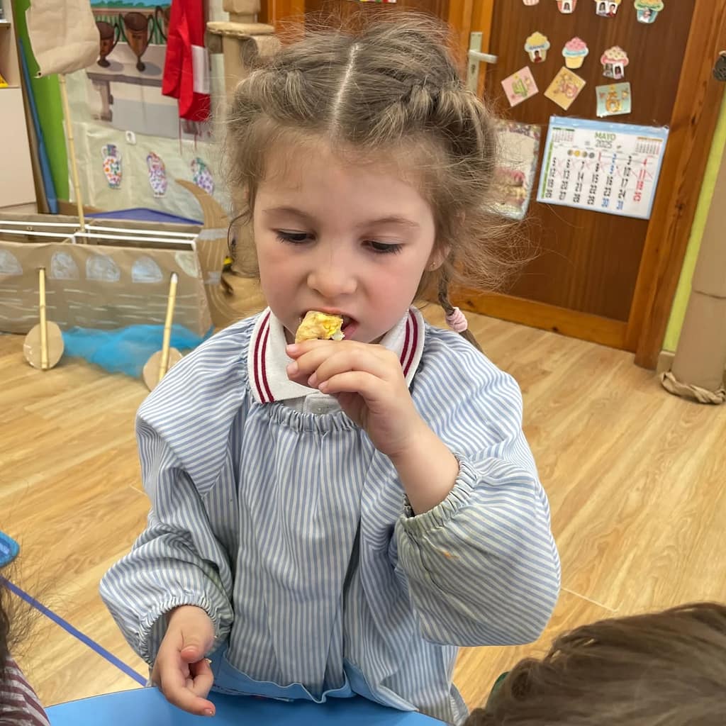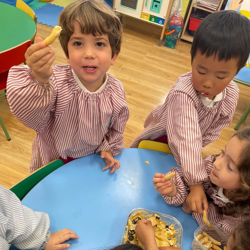 Durante el fin de semana, las familias investigaron y prepararon recetas típicas griegas junto a los peques… ¡y hoy hemos podido preparar y degustar una receta en clase!