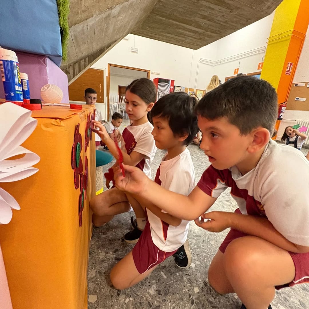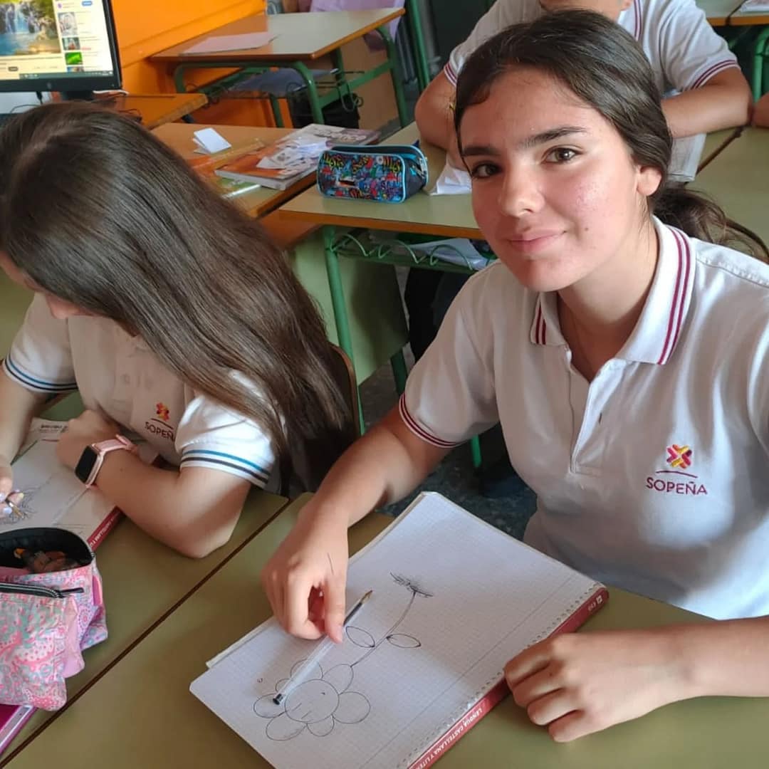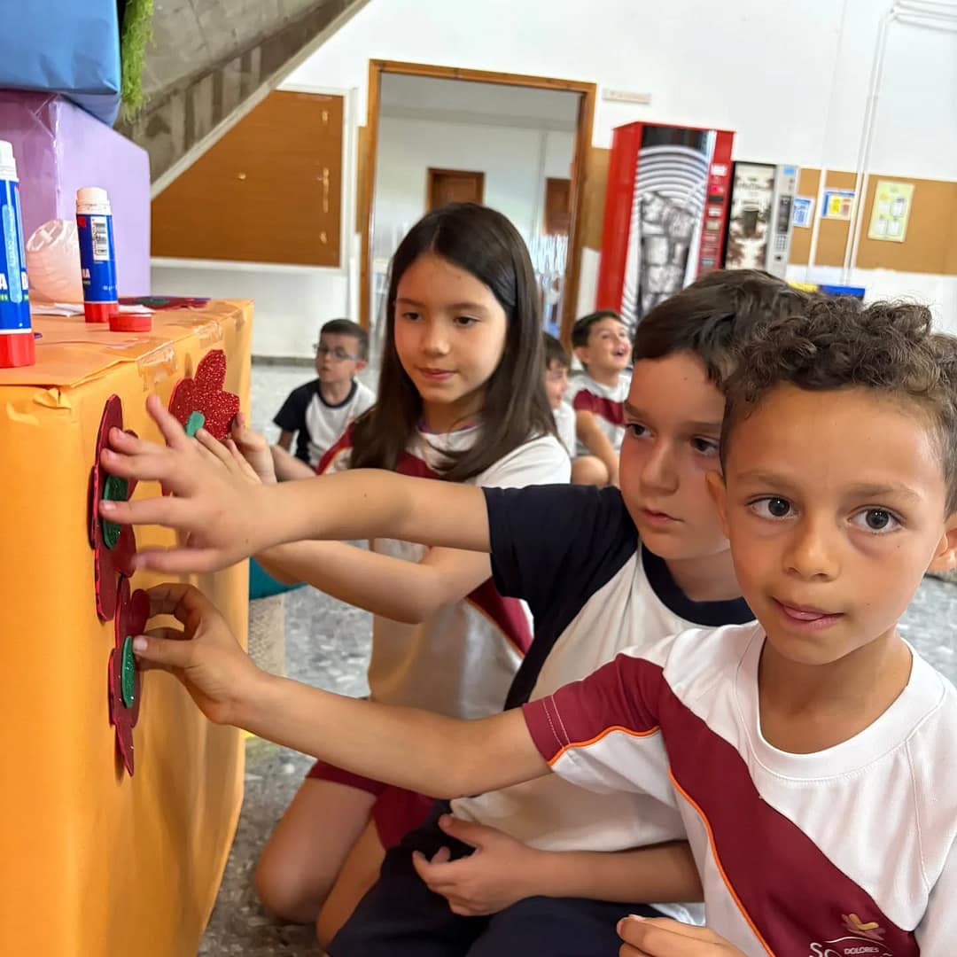 Después han colocado sus flores que han hecho en el mural del hall compartiendo sus deseos y valores de María. En ESO han realizado una dinámica similar, donde regalar flores cargadas de deseos, cualidades, oración..