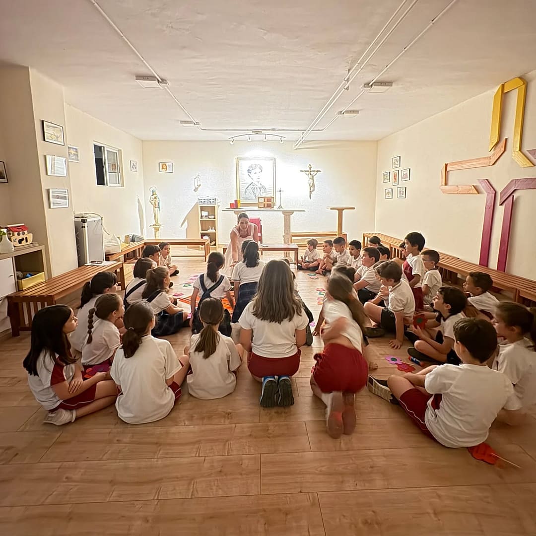 El alumnado de primer ciclo de Primaria ha tenido hoy un momento de oración en el oratorio sobre la figura de la Virgen María, momentos de grupo donde aprender a rezar y descubrir a través de la metodología GodlyPlay.
