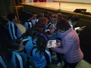 Los alumnos de 4°, 5° y 6° de Educación Primaria han asistido al taller de poesía «El Ateneo va al cole», a cargo de la escritora extremeña Chari Llanos Pineda. Esta actividad está organizada por el Ateneo de Badajoz, y su Vicepresidenta, Carmen Conejero Ruano, también ha estado presente en el acto.
