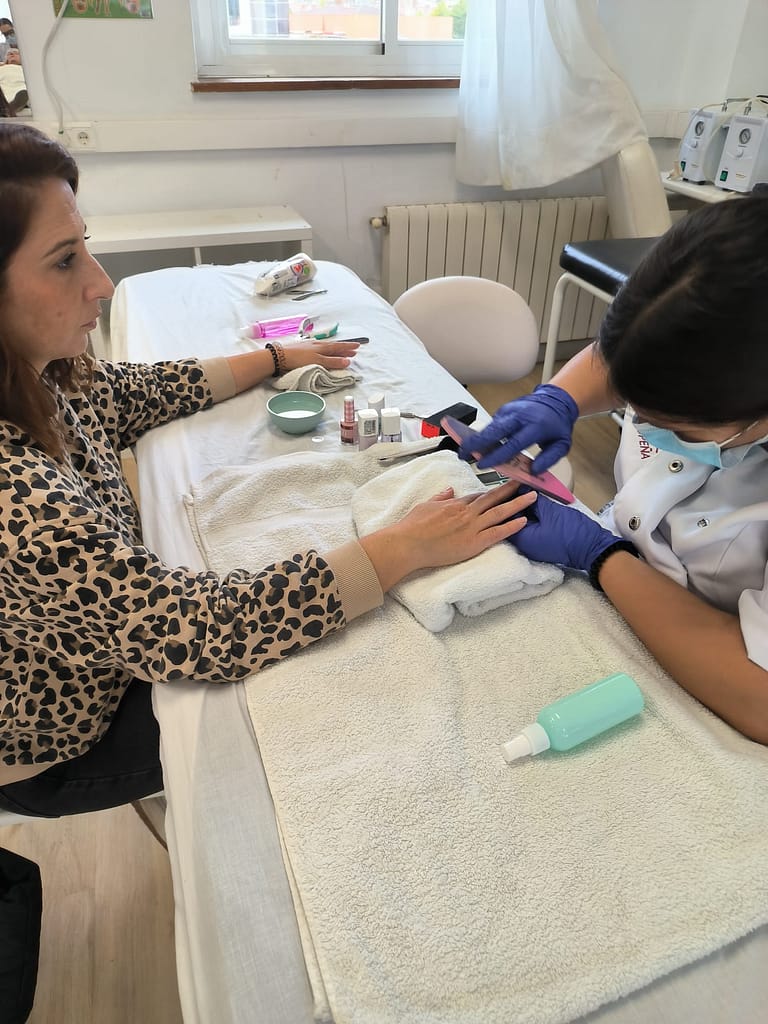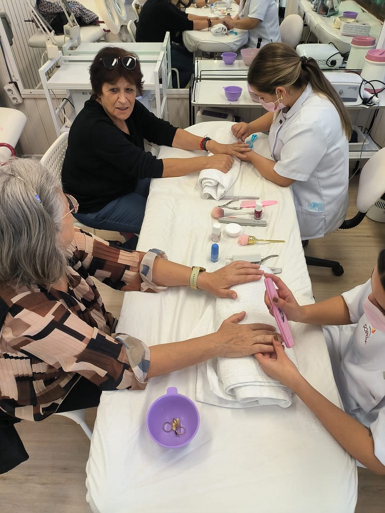 Un año más, las alumnas de 2º curso del Ciclo Formativo de Grado Medio de Estética han llevado a cabo un taller de manicura e higiene y limpieza facial, ofreciendo cuidados y dedicación a nuestros mayores.
