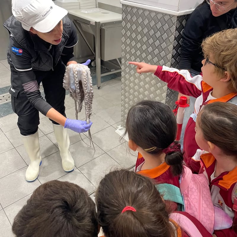 Han visitado el supermercado @carrefoures, donde han podido ver de cerca la pescadería, la carnicería, la panadería y la frutería. ¡Qué ilusión descubrir tantos alimentos y conocer a las personas que trabajan allí con tanto cariño!