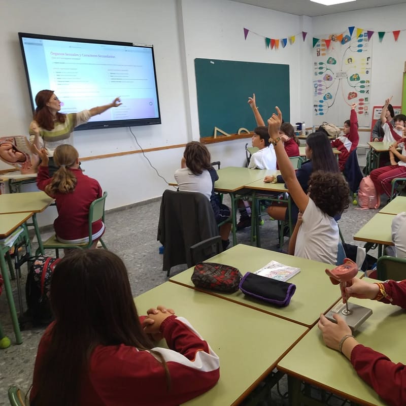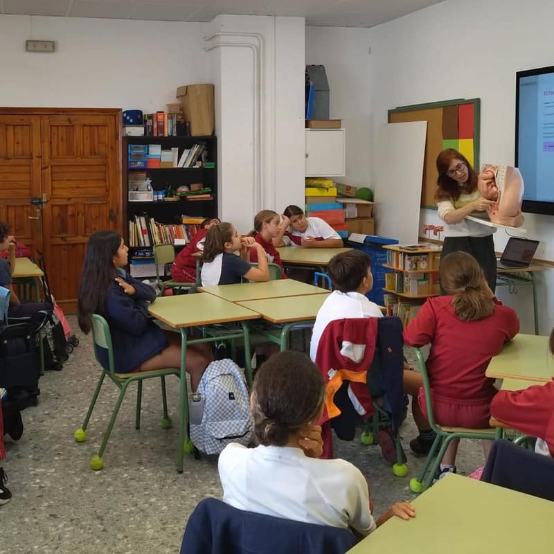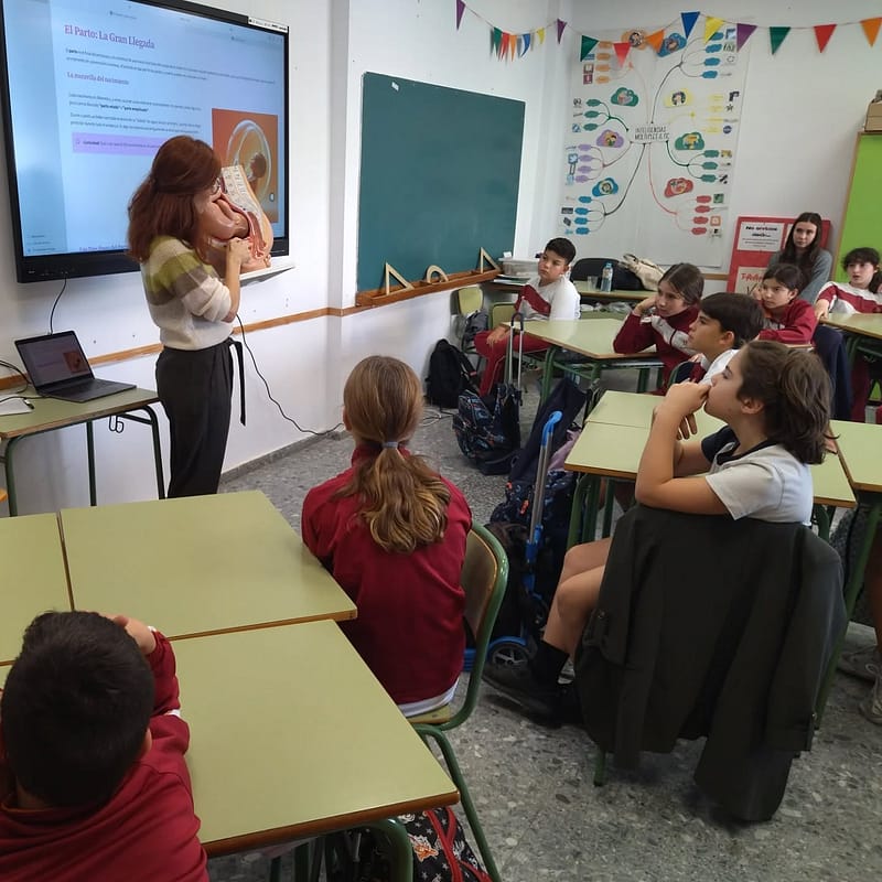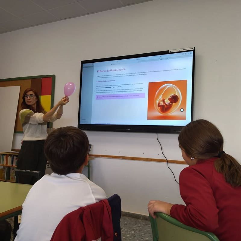 El alumnado de 6º de Primaria ha contado con la visita de Araceli, matrona del SES, para realizar una actividad relacionada con la fecundación, el embarazo y el parto, contenidos y objetivos que están descubriendo en el área de conocimiento del medio.