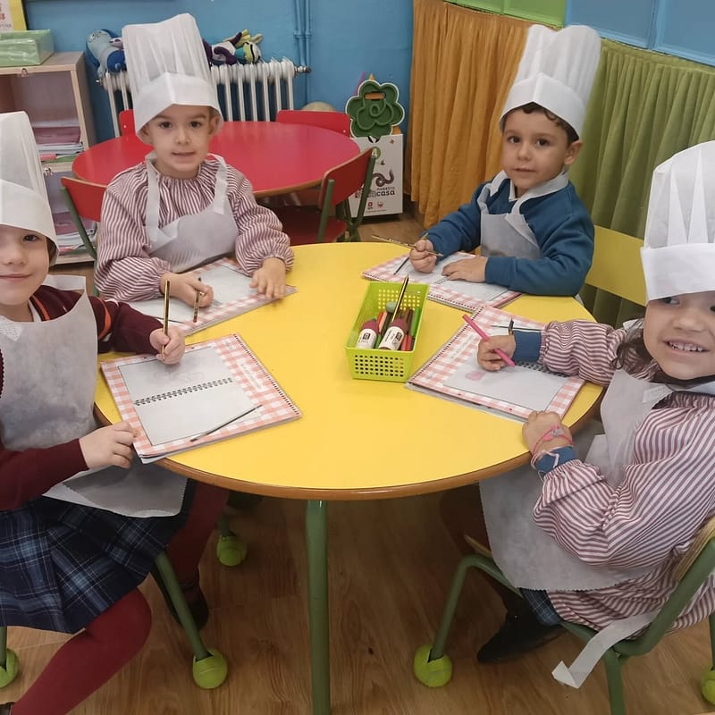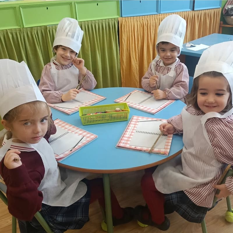 Los mini chefs de 4 años se han puesto el delantal y el gorro, dejando volar su imaginación en la cocina.