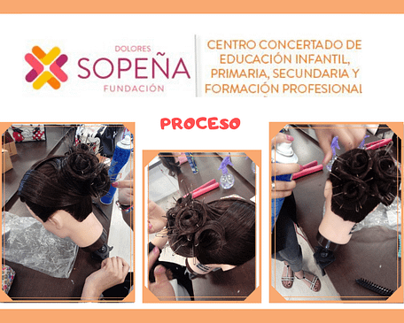 Nuestras alumnas de CFGM de 1º de Peluquería Sopeña Badajoz, han realizado un trabajo muy laborioso y entretenido, que ha consistido en elaborar un recogido a base de capullitos de rosas.