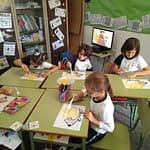 Los alumnos de 2º de Primaria preparan el Otoño, la Celebración de los Santos y repasan diferentes contenidos de área a través de esta divertida propuesta de pintar un erizo usando témperas, colores y un tenedor de plástico. Además, desarrollan habilidades creativas, de trabajo en equipo y repaso de lo aprendido. Descubre más trabajos originales de los alumnos de Infantil y Primaria en el hall del centro.