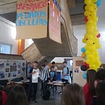 Por otro lado han podido estudiar diferentes aspectos relacionados con la genética, acompañados de una majestuosa cadena de ADN que han elaborado los alumnos de 3º de ESO en Tecnología, sus compañeros de 4º han podido ser maestros por un día para compañeros de otro instituto, en este caso del IES Rodríguez Moñino.