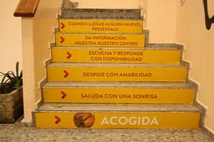 Una actividad, «Nos conocemos», que se está realizando en Educación Primaria, nos ha traído a la memoria a una antigua alumna, Sonia García; esta antigua alumna Sopeña, actualmente en 6º de Medicina, subió y bajó las escaleras de esta foto años atrás. En breve, cuando ejerza de doctora seguro que a sus¡ habilidades duras, tendrá que sumar las blandas. Seguro que tendrá que saludar a sus pacientes con una sonrisa, despedirlos con amabilidad, escucharlos con disponibilidad y dar información. ¿Os suena? Sí, son acciones del primer valor de la Fundación Sopeña: la acogida.