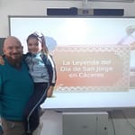 El padre de Xenia ha contado a los alumnos de 1º de E.P. la «Leyenda de San Jorge» y la conquista de los cristianos para recuperar Cáceres.