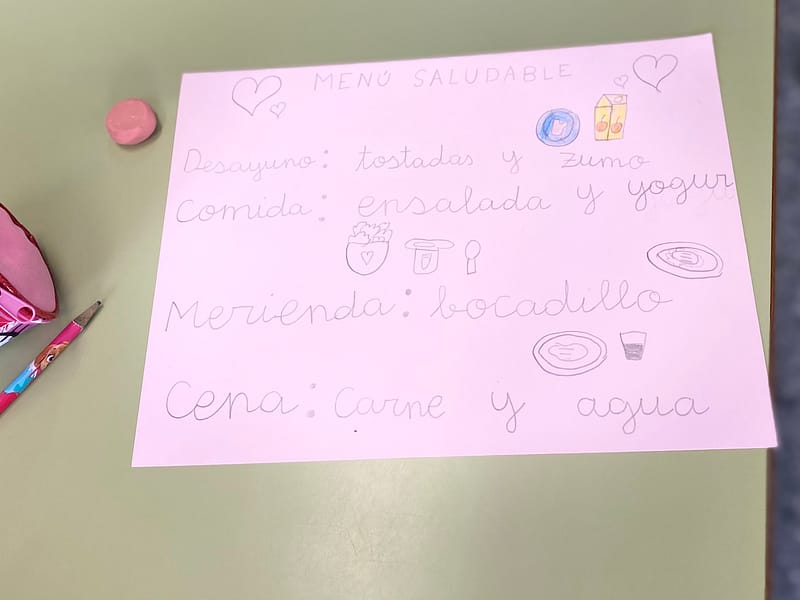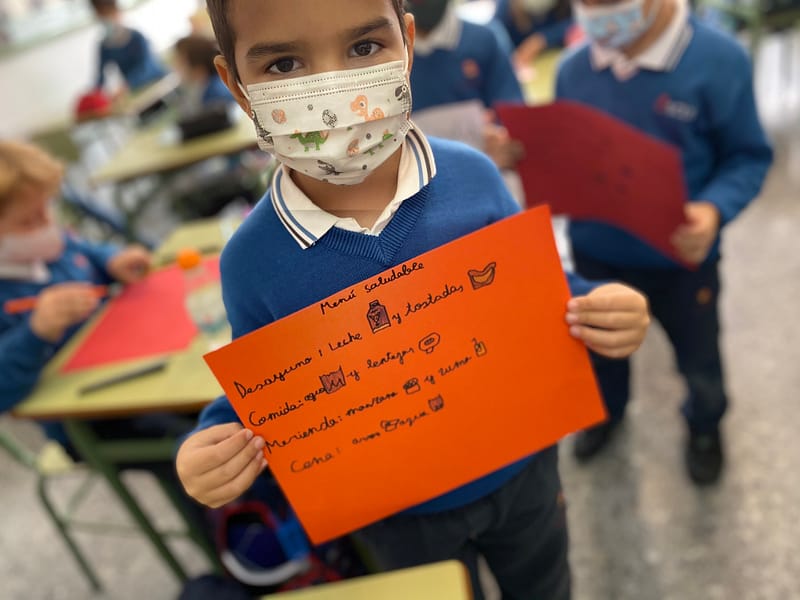 Los alumnos de 1º de Educación Primaria en el área de ciencia han estado trabajando a través de vídeos y canciones los alimentos y la alimentación saludable. A través de la elaboración de un menú comprobamos todo lo aprendido y ellos mismos se auto evalúan.