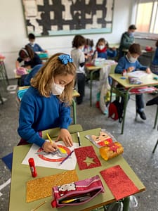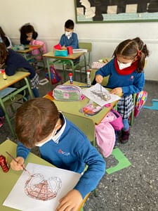 Los alumnos de 1ºE.P celebran el 40 aniversario del carnaval de Badajoz con un taller de disfraces LOS SÚPER HÉROES VIENEN A SALVARNOS.