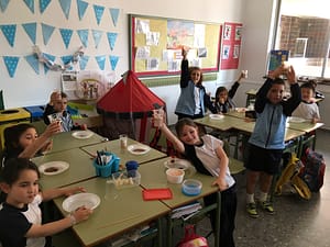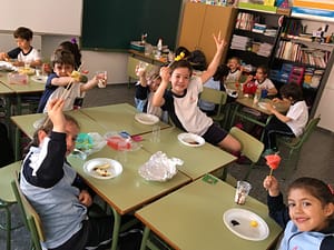 Los alumnos de 1º de Educ. Primaria disfrutan de un día divertido degustando batidos de frutas, han mezclado diferentes sabores, le han añadido nata, sirope…El objetivo de esta actividad es que los alumnos descubran sabores, texturas y diferentes frutas promoviendo hábitos saludables.