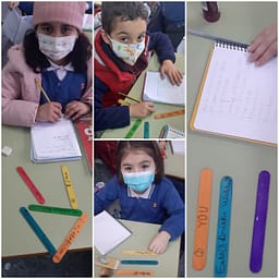 Los alumnos de segundo de de E.P , trabajan el presente simple de los verbos formando oraciones a través de palos de colores, en los que han escrito los pronombres personales y en otros los verbos. Una forma lúdica de aprender a hacer oraciones, que han añadido a sus rutinas de clase.