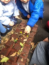 Los peques estaban encantados con su visita. Además de darle de comer, le construimos una camita hecha de hojitas y un puente para que pudiese llegar a los árboles.