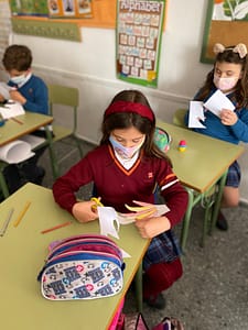Los alumnos de 1º y 2º de E.P. A partir de canciones y cuentos conocen la historia de Europa e identifican las banderas y capitales q forman La Unión Europea.