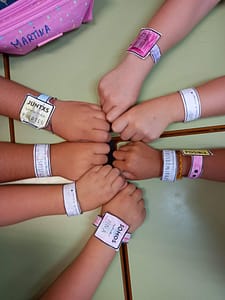 Como recompensa han recortado una pulsera de bienvenida al nuevo curso y un reloj con mensajes divertidos de ánimo y buenos deseos.