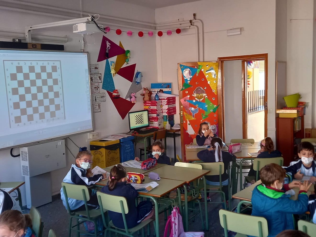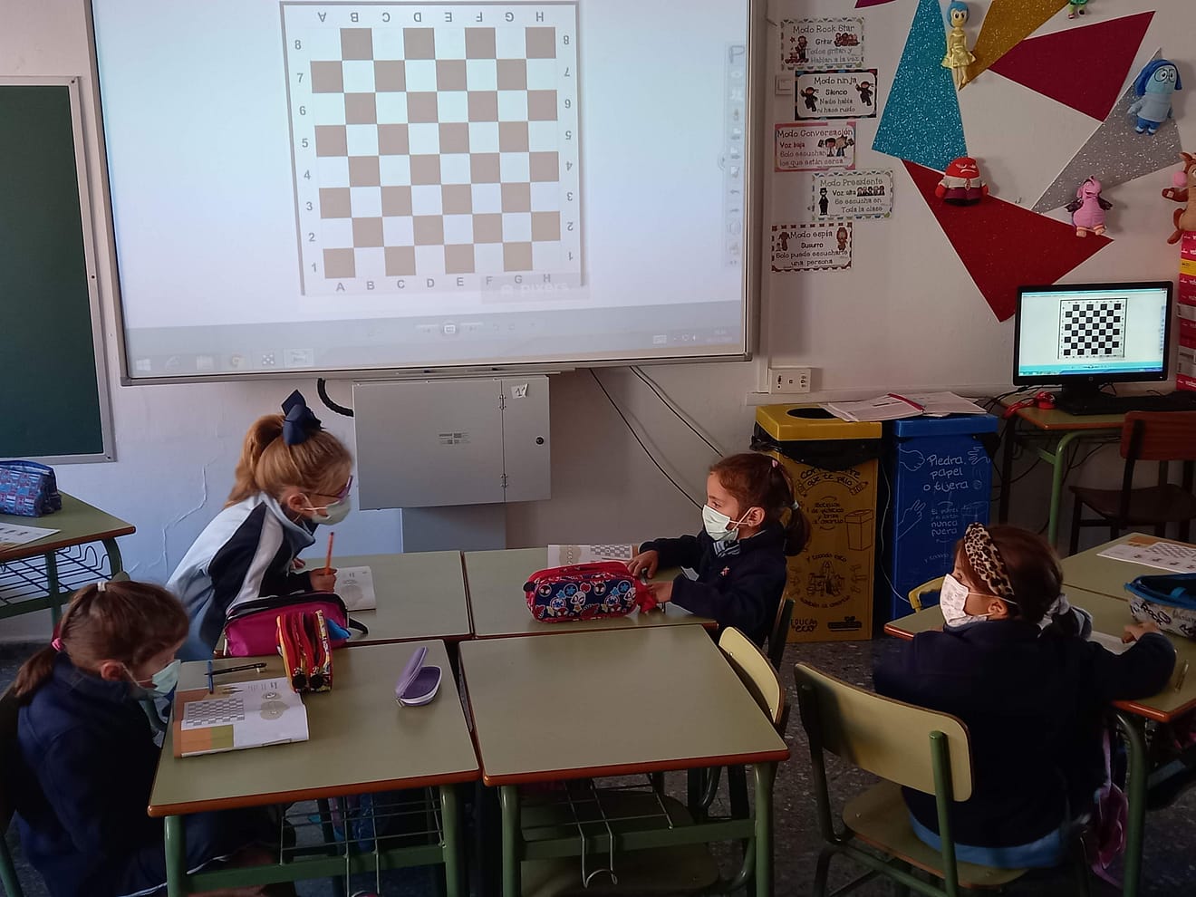 El alumnado de 1º de Educación Primaria está inmerso en el proyecto de Ajedrez en Aula, cuyos beneficios son mejorar la atención, concentración, la planificación, la capacidad de adelantarse a jugadas…