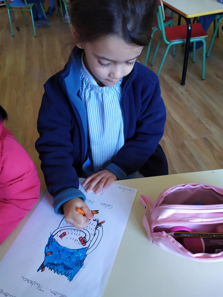 Finalizando con la elaboración de un Emociómetro y dibujando al monstruo de color AZUL.