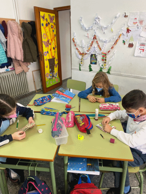 En este concurso el alumnado de 1º de Primaria se está encargando de los adornos planos, 2º de Primaria de los adornos con volumen y la Señorita Carmen y D. Servando de las letras y montaje, un gran trabajo en EQUIPO.
