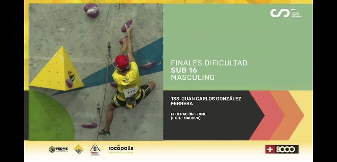 Tampoco nos queremos olvidar de CACO Escalada Antiguo Alumno , que este año está en la residencia de Deportistas de Alto rendimiento de Cáceres. Sigue acumulando éxitos en los pocos meses que entrena en la localidad cacereña, ya ha obtenido un 3º puesto en Campeonato de España y un 1º en el Open de Bloque celebrado en Plasencia, en su respectiva categoría. Federacion Extremeña Montaña Escalada