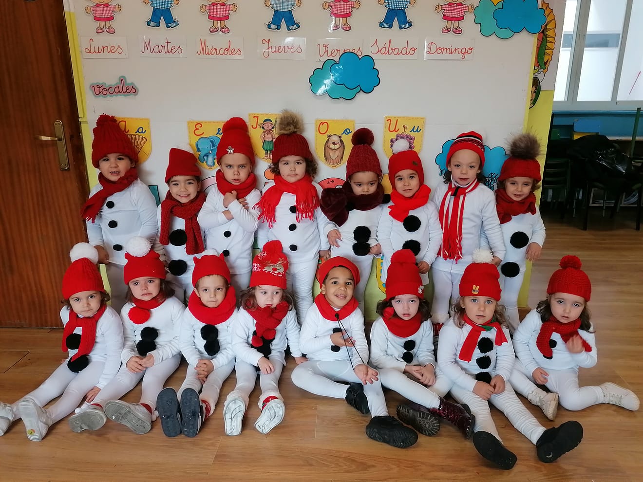 La Navidad ya está cerca y los más pequeños del cole, nos preparamos para un día especial: la grabación del villancico «Muñeco de nieve, Navidad», bailamos y cantamos al son de la música y se lo dedicamos a nuestras familias, disfrazados de muñecos de nieve.