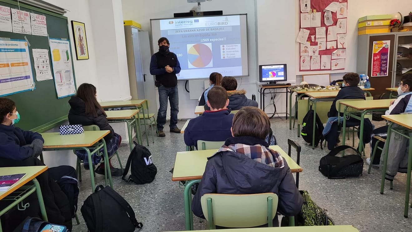 Los alumnos han disfrutado de la naturaleza en el aula recibiendo formación sobre la zona ZEPA urbana de Badajoz, además han visto plumas, huesos y egagrópilas de aves. Para finalizar, han conocido el canto de muchas aves que nos rodean.