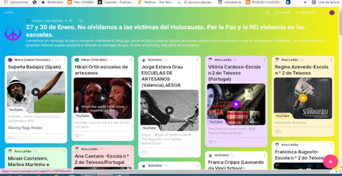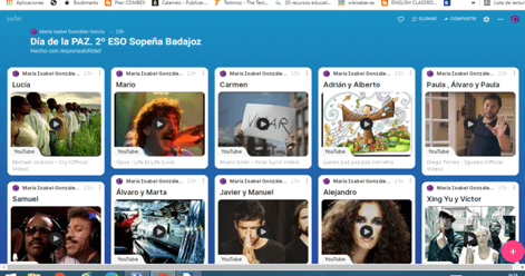 Primero han investigado sobre canciones que hablan de la paz, después han elegido una de ellas y realizado un padlet con las mismas.
