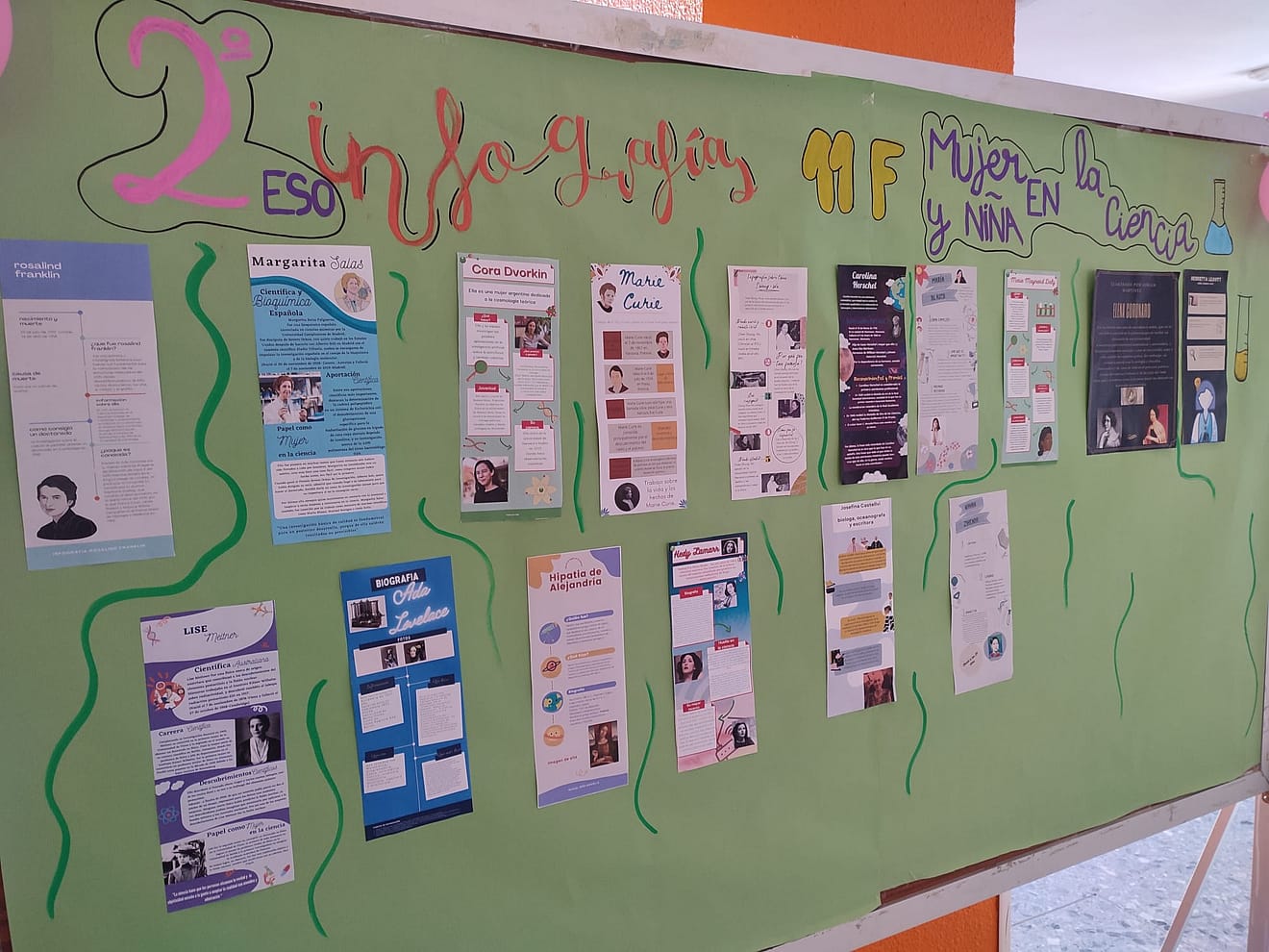Con motivo de la conmemoración del 11F, Día Internacional de la Mujer y la Niña en la Ciencia, nuestros alumnos de 2º de ESO en el área de Física y Química han preparado una exposición con infografías sobre la vida de numerosas mujeres científicas desconocidas, indagando las importantes aportaciones de cada una de ellas al mundo de la ciencia, así como las dificultades que encontraron en su trayectoria profesional.