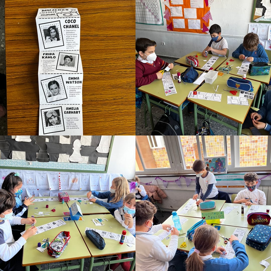 Y los alumnos de 2º han trabajado a mujeres q han cambiado el mundo. (Coco, Chanel, Frida Khalo, Enma Watson…).