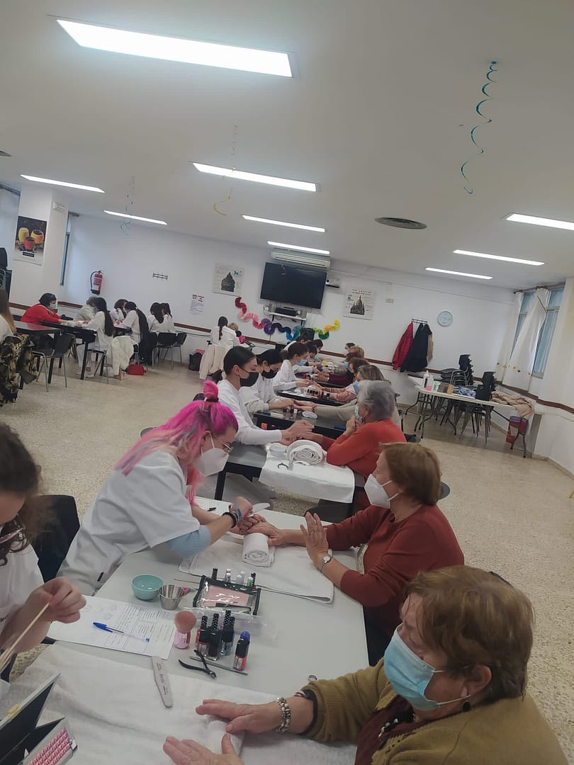 Los alumnos y alumnas de 1º de Estética y Belleza realiza una sesión de manicura al Centro de Mayores de la Paz de Badajoz.