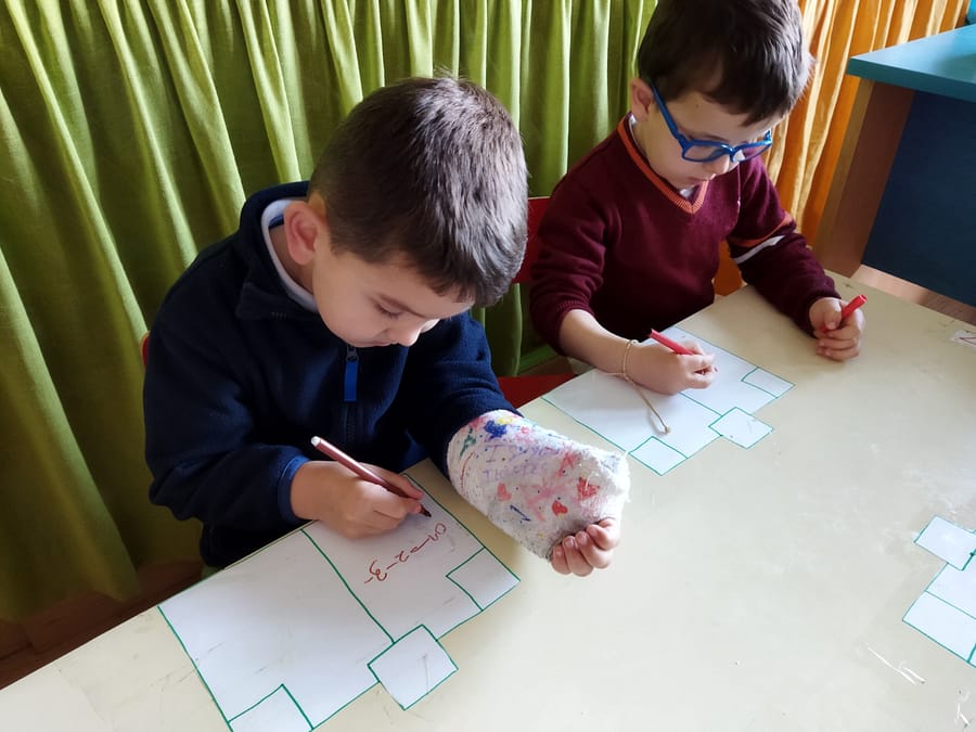 Los alumnos de 4 años escriben los números, formas geométricas, series,… sobre su pizarra mágica de la mesa, les gusta mucho escribir con rotuladores y poder borrarlos , esta actividad es muy motivadora para ellos.