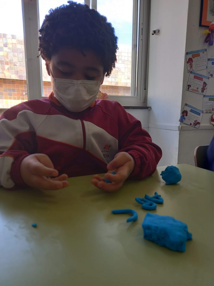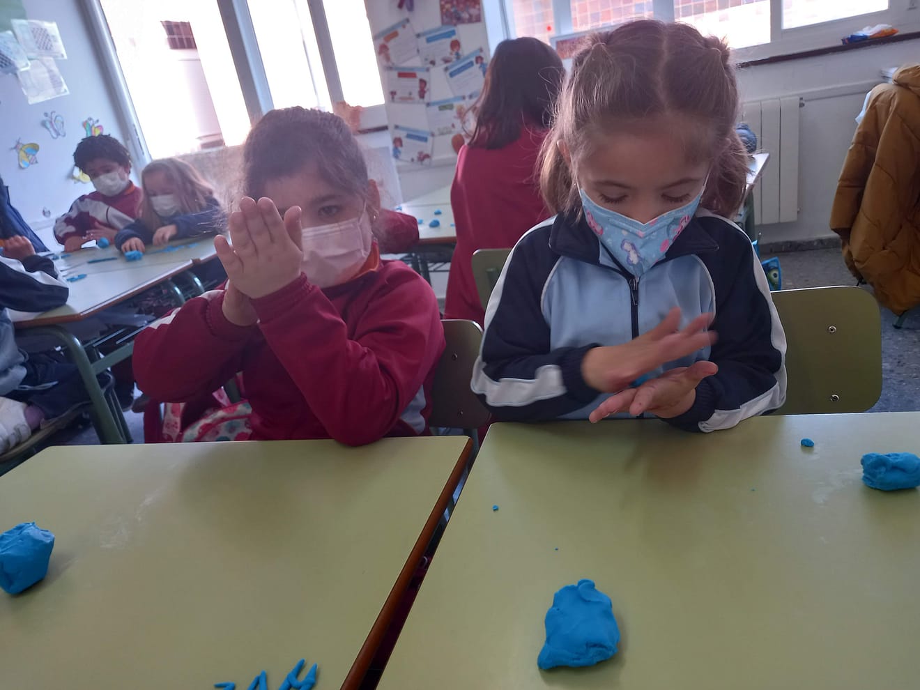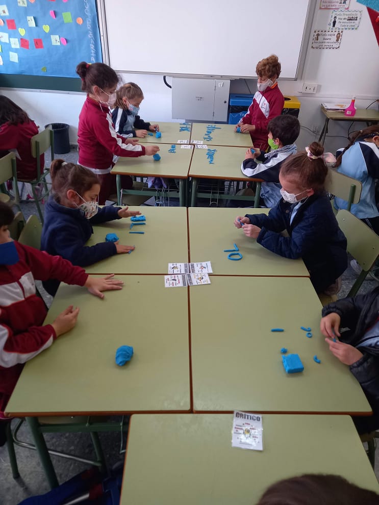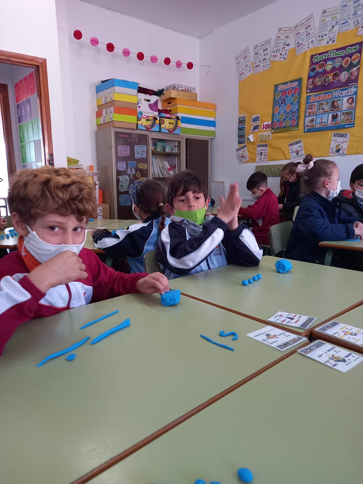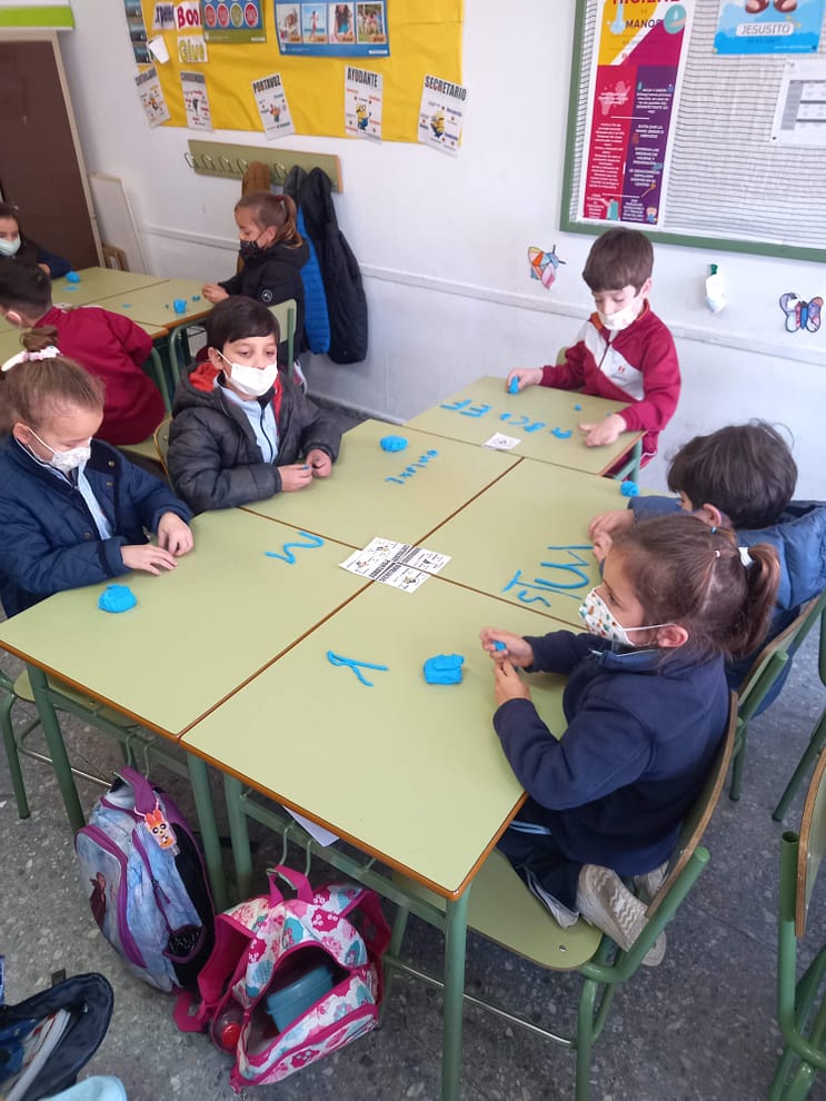 Los alumnos y alumnas de 1º de Primaria ha practicado y afianzado el abecedario a través de la plastilina, modelando todas y cada una de las letras, haciendo agrupaciones por consonantes/vocales, reproduciendo su nombre, organizando y planificando la tarea en grupo…